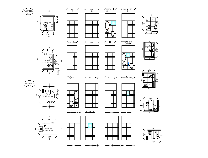 Toilet floor plan detail drawing provided in this AutoCAD file. in this file, the toilet section detail with sanatory blocks and wall tiling detail given with dimensions and specifications.this can be used by architects and engineers. Download this 2d AutoCAD drawing file.