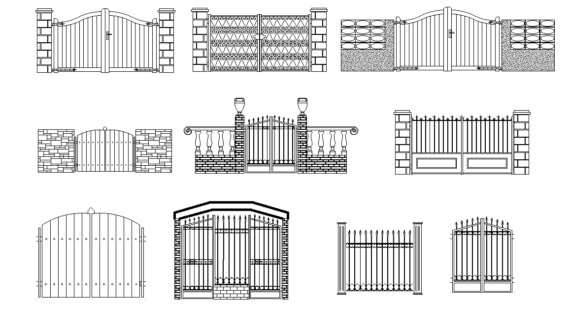 Main gate detail drawing specified in this AutoCAD file. in this file, several gate plans are given with different designs and patterns. each can be used in architecture projects. this can be used by architects and engineers. Download this 2d AutoCAD drawing file.