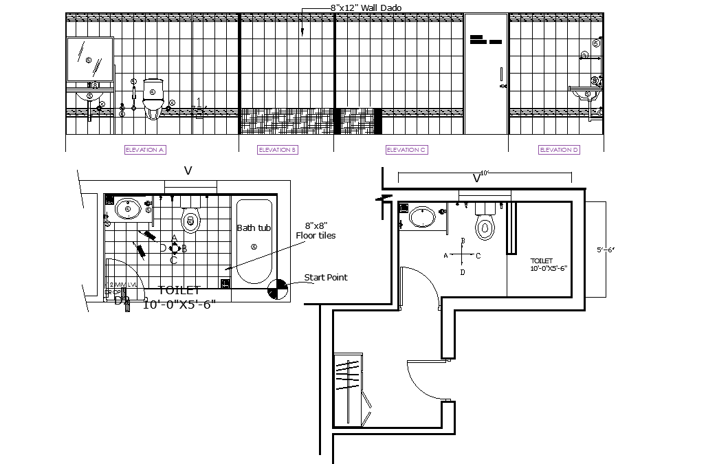 Bathroom detail drawing presented in this AutoCAD file. this file consists of sanatory blocks with wall tiling and floor tiling detail drawing in this file with specifications. this can be used by architects and engineers. Download this 2d AutoCAD drawing file.