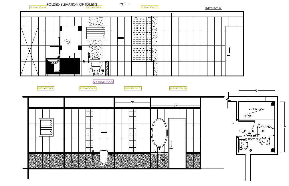 Toilet section detail drawing provided in this AutoCAD file. this file consists of sanatory blocks with wall tiling and slops detail drawing in this file with specifications. this can be used by architects and engineers. Download this 2d AutoCAD drawing file.