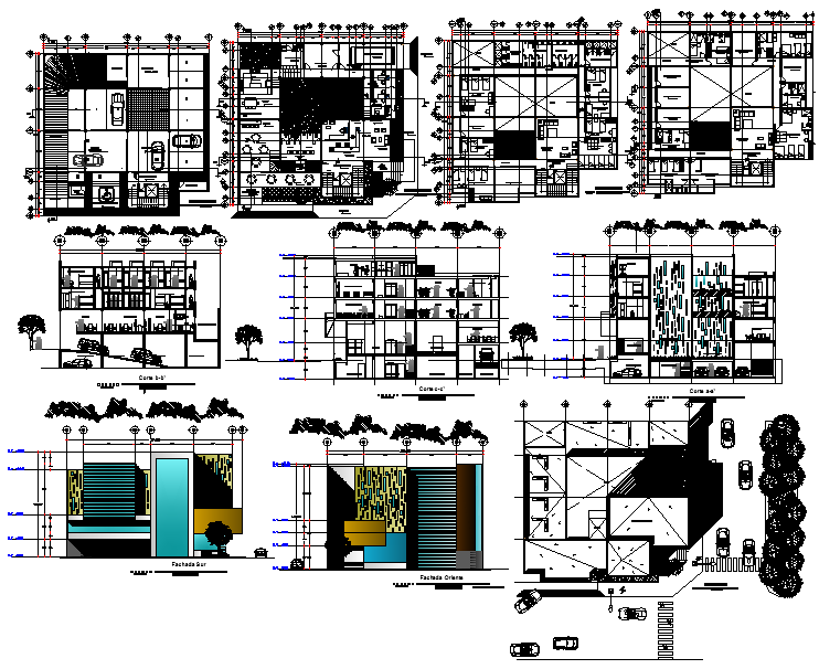 1 to 5 Floor Lay-out detail, Elevation design in the DWG file, basement parking plan, section cutting detail & all furniture detail include. bed room, dining hall, seating area, study room, etc.