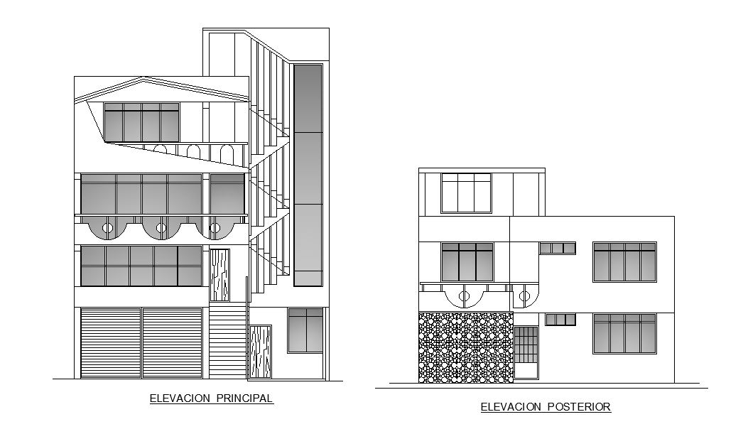The residence house CAD drawing that shows 2 different house building front elevation design that shows doors windows marking, roof level and front gate are mentioned in this drawing model. Download the Autocad drawing file. Thank you for downloading the Autocad drawing file and other CAD program files from our website.