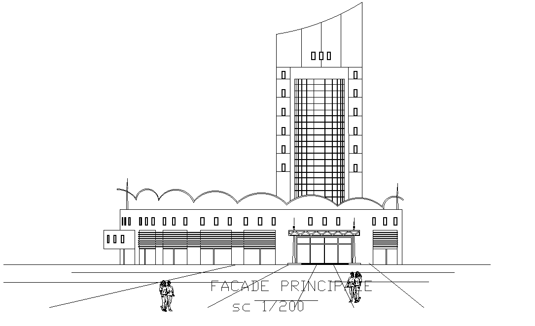 The collage front elevation detail drawing stated in this AutoCAD file. in this file, the main entrance shutter detail, and the multi-storied building behind the collage also. this can be used by architects and interior. Download this 2d AutoCAD drawing file.