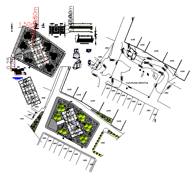 Sports plat form Design DWG file All detail include the sport area. Center line (all lines of 0.05 mt), Restrictive area, Slab plant, structure detail.