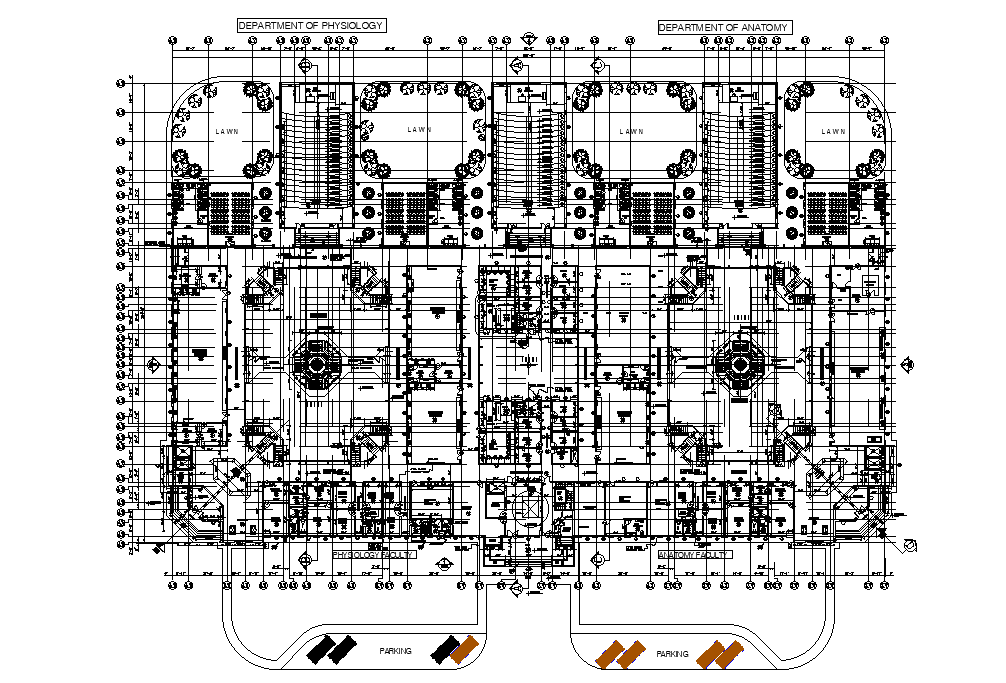 University block detail drawing defined in this AutoCAD drawing file. this file consists of the department of physiology and department of anatomy drawing presented in this file. this can be used by architects and engineers. Download this 2d AutoCAD drawing file.