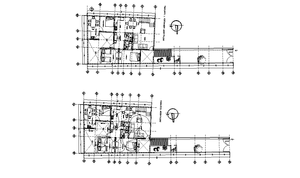 Hydraulic and sanitary installation of the house plan is given in this 2D Autocad drawing file. 14x11m gaby house plan detail is given in this 2D Autocad DWG drawing file. Electrical layout of the plan is given in this AutoCAD. The length and breadth of the plan is 14m and 11m respectively. This plan consists of kitchen, dining, breakfast area, living hall, bedrooms with attached toilet and garden. In this plan two houses are available. For more details download the 2D AutoCAD DWG drawing file. Thank you for downloading the 2D AutoCAD DWG drawing file and other CAD program files from our website.