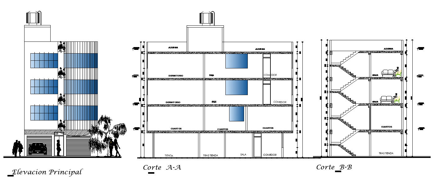 Section view of 8x12m Local commercial cum residential plan is given in this 2D Autocad DWG drawing file. Total height of the building is 11.8m. Glass are provided for the windows. This is G+3 house plan. At ground floor, car parking, back shop, store, dining, kitchen and living hall are mentioned. At first floor bed rooms, toilet and patio are available. At second floor and third floor living hall, kitchen, dining, and bedrooms are available. The length and breadth of the plan is 8m and 12m respectively. Download the 2D Autocad DWG drawing file. Thank you for downloading the 2D AutoCAD DWG drawing file and other CAD program files from our website.