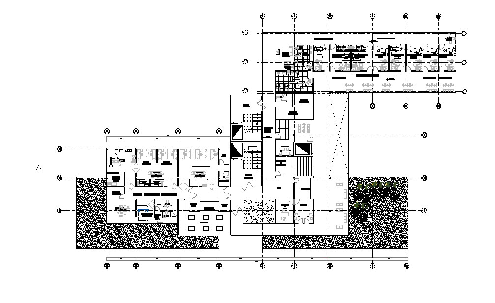 Corporate building floor plan detail drawing presented in this AutoCAD file. this file consists of services and utility detail drawing with separate cabin and landscaping open space given in this file. this can be used by architects and engineers. Download this 2d AutoCAD drawing file.