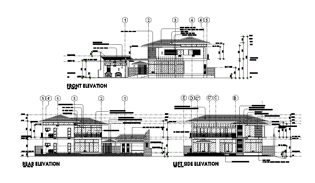 Front elevation view of the residential building is given in this Autocad drawing file. This is G+1 residential building. Roof level is mentioned in this drawing model. Download the Autocad drawing file. Thank you for downloading the Autocad drawing file and other CAD program files from our website.
