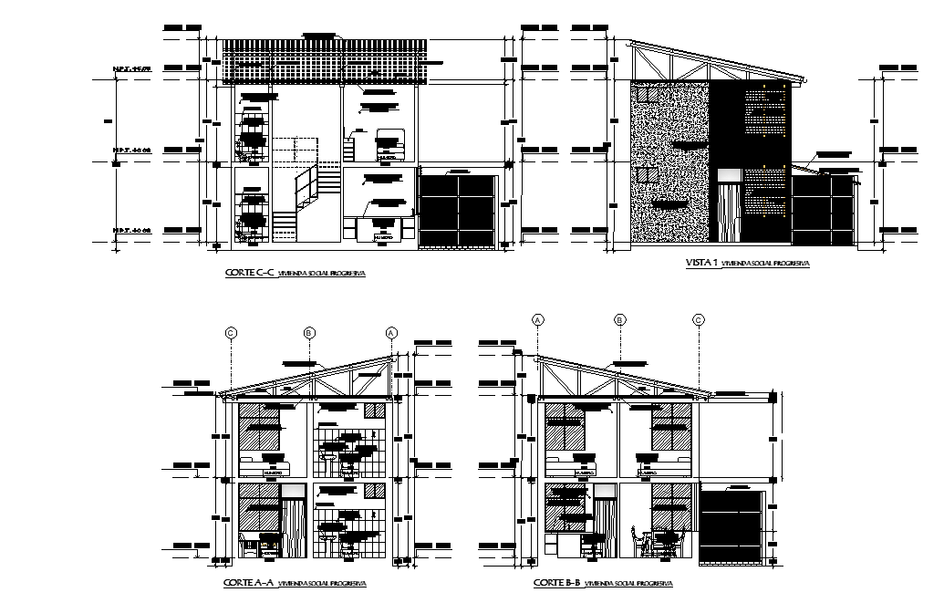 9x10m house plan section view is given in this 2D Autocad drawing file. Download now.