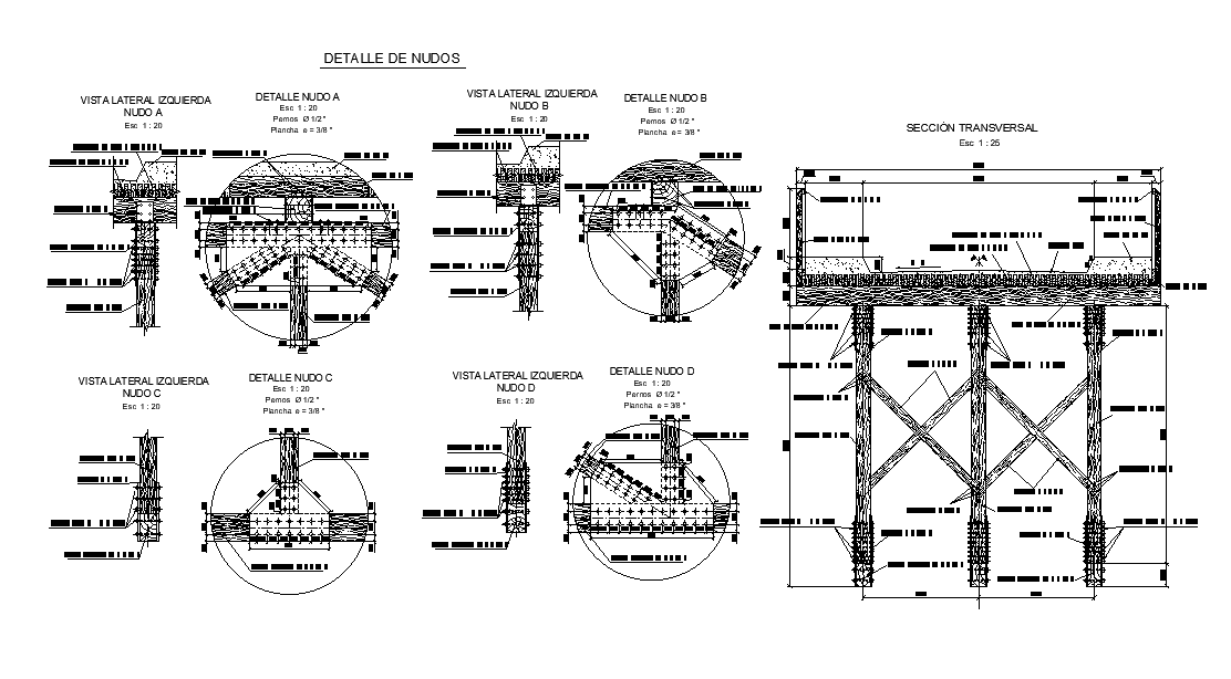Knots detail for the wooden bridge drawing specified in this AutoCAD file. this file consists of working drawing specifications and dimensions given of bridge enlarged drawing detail. this can be used by architects and engineers. Download this 2d AutoCAD drawing file.