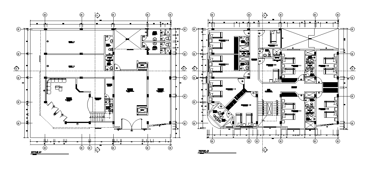 The residence hostel building ground floor and first floor layout plan CAD drawing shows 320 square meter total plot size. the plan drawing includes reception area, kitchen, dining hall, control room, bedrooms with an attached toilet. the additional detail such as a center line plan with dimension. Thank you for downloading the AutoCAD file and other CAD program from our website.