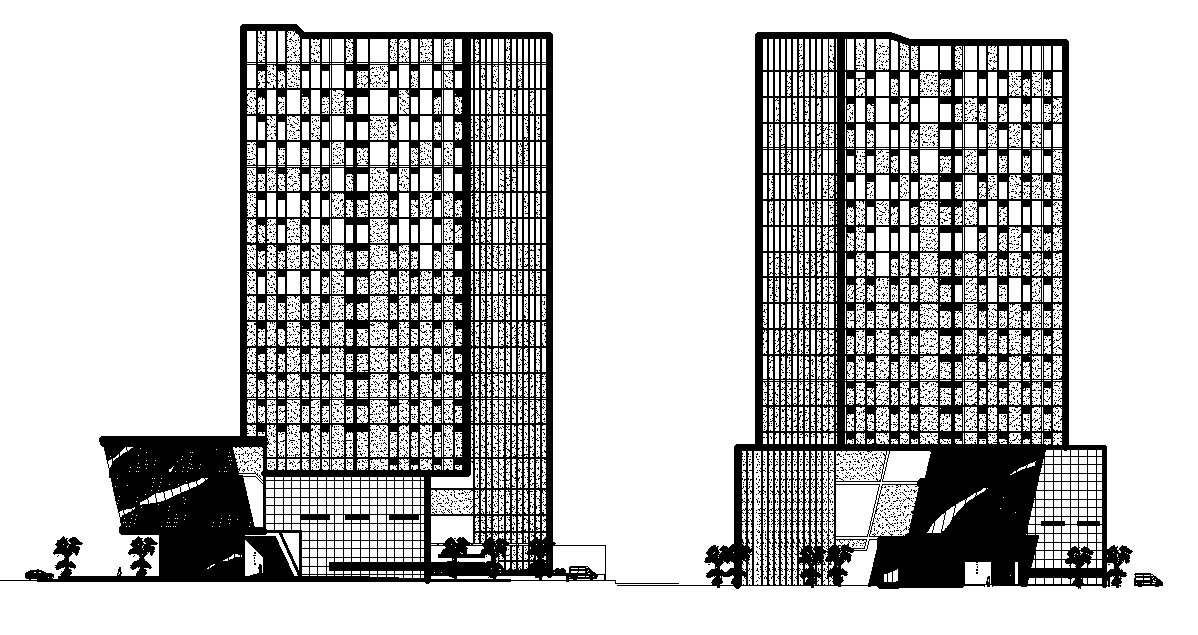 Section view of the hospital building is given in this Autocad drawing model. This is G+18 floor hotel building. Glass material is used for the front portion of the hotel building. Trees are available both side of the building. Download the Autocad drawing file. Thank you for downloading the Autocad drawing file and other CAD program files from our website.