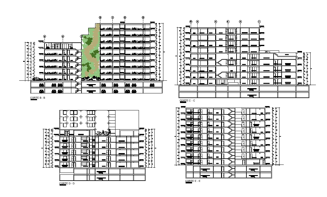 Section view of 25x39m house plan is given in this Autocad drawing file. This is G+10 floor residential building. In this plan seven houses are available. Two floors are provided for car parking. Total height of the building is 25.35m. kitchen, dining , hall and balcony are available in the all floor. Download the Autocad drawing file. Thank you for downloading the Autocad drawing file and other CAD program files from our website.