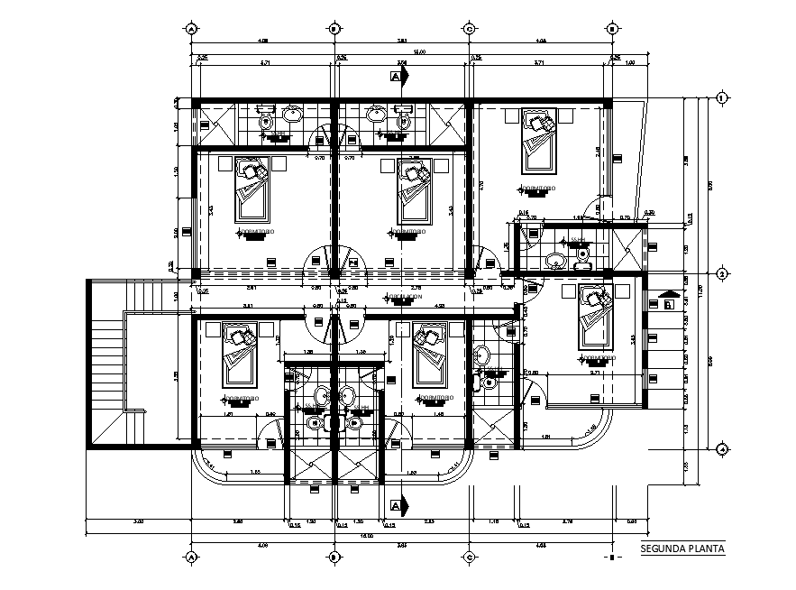 The hotel bedrooms floor plan AutoCAD drawing that shows bedrooms with an attached toilet also has single bed, sanitary ware and all dimension detail. the additional drawing such as center line plan. Thank you for downloading the AutoCAD file and other CAD program from our website.