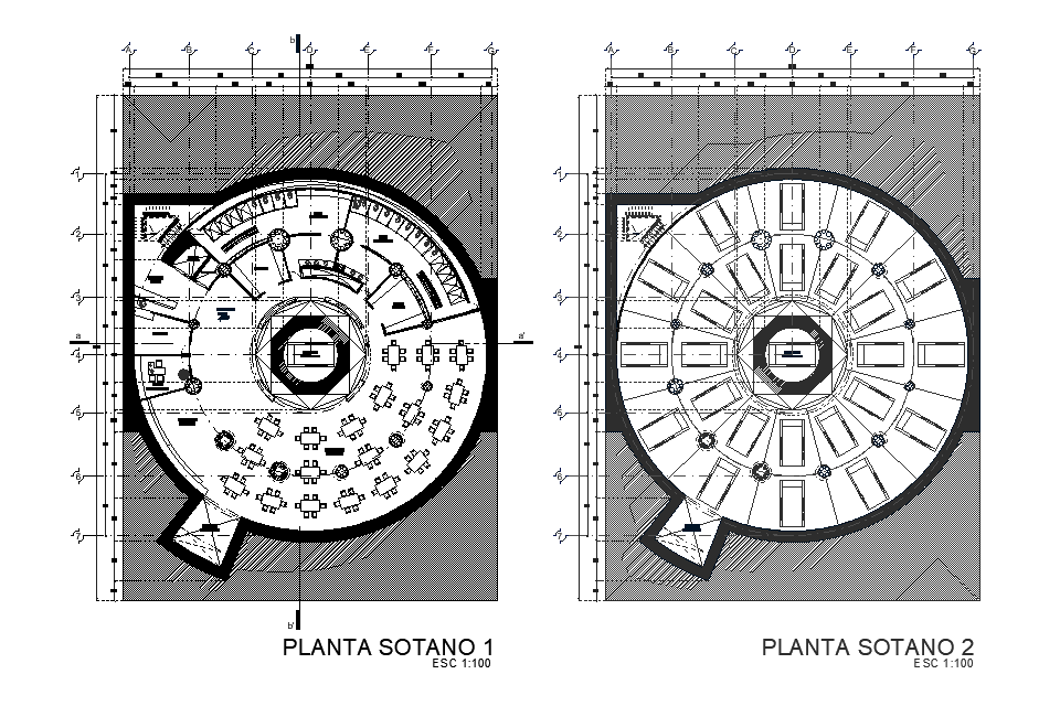 The restaurant layout plan AutoCAD drawing that shows platform (parking), control of service room, maintenance manager cabin, café area employees, and toilet for man and woman. the additional drawing such as center line plan with dimension detail. Thank you for downloading the AutoCAD file and other CAD program from our website.