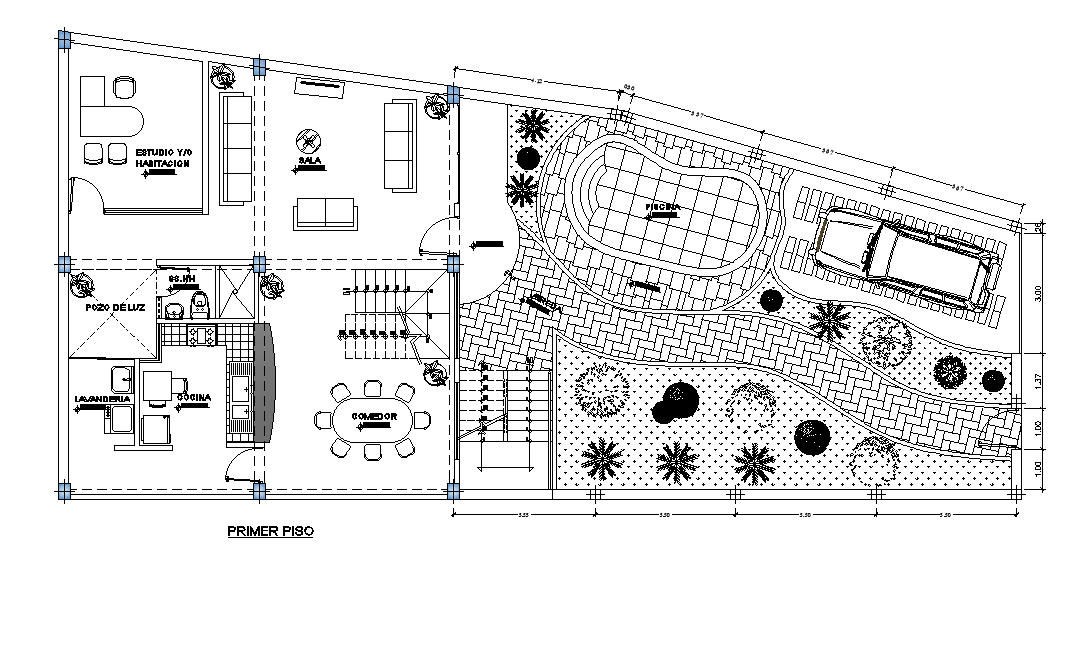 Bungalow floor plan drawing separated in this AutoCAD file. Download the AutoCAD file.
