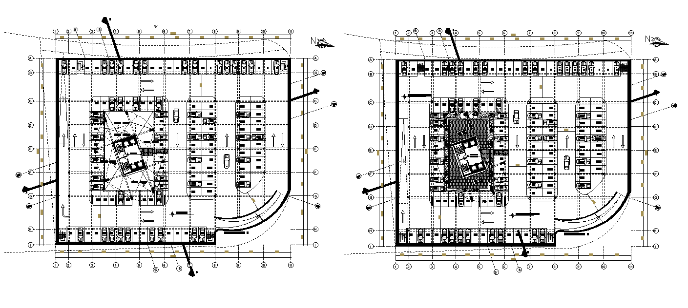 Basement parking detail drawing provided in this AutoCAD file. Download the AutoCAD file.