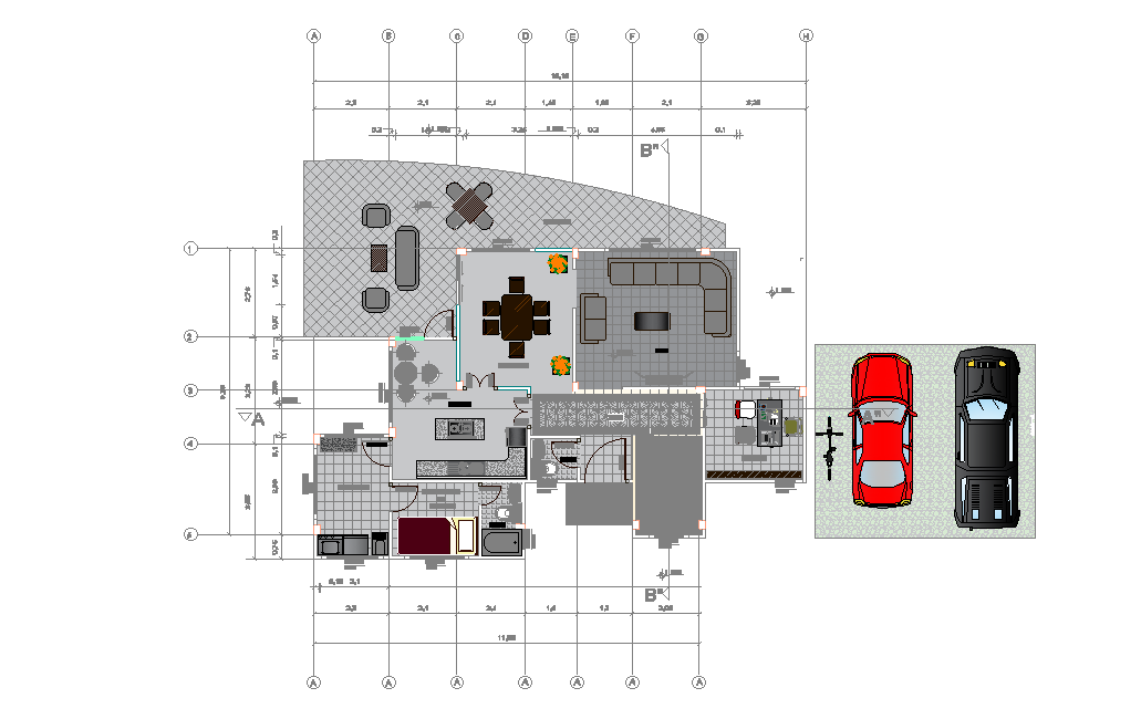 Bungalow floor plan drawing stated in this AutoCAD file. Download the AutoCAD file.