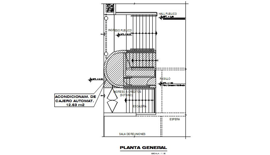 General floor of storage building plan is given in this 2D Autocad drawing model. Room details are given. This plan consists of meeting room, corridor, waiting area, public hall, public income, and other details are given. For more details download the Autocad drawing file. Thank you for downloading the 2D Autocad files and other CAD program files from our website.