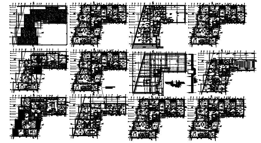 Multifamily residential building plan is given in this Autocad file. Download the Autocad file.
