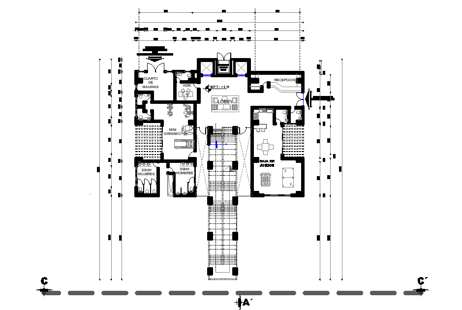 Clubhouse floor plan detail drawing presented in this AutoCAD file. this file consists of gym exercise equipment with services and utilities detail drawing given with dimensions and specifications. file. this can be used by architects and engineers. Download this 2d AutoCAD drawing file.