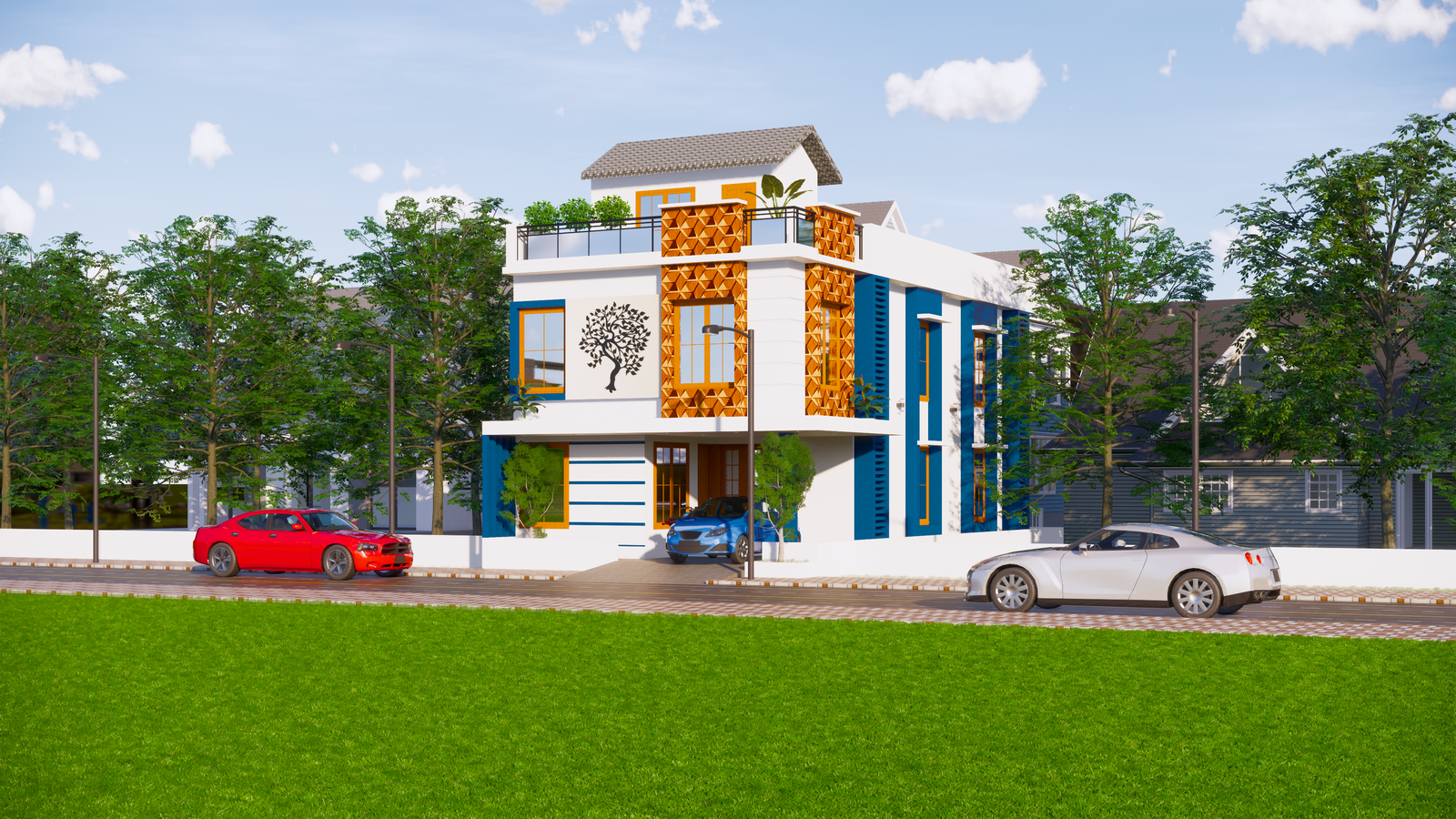 G+1 house elevation design with penthouse Revit drawing file is given here. Beautiful double storey house elevation with penthouse is given. The side elevation, morning mode design, and tree wall design look awesome. This drawing is useful for the people who searching for house elevation ideas, civil engineers, and architects. you can Download this drawing Revit file for free on cadbull.com.