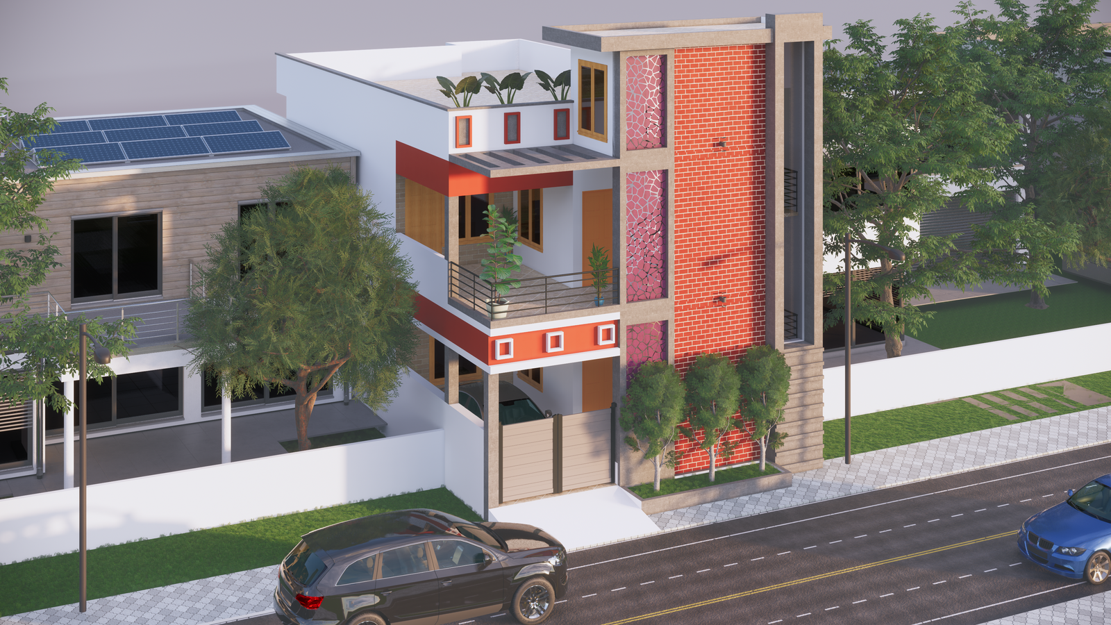 G+1 3d wonderful house elevation design Revit drawing file. download the Revit file on cadbull.com.