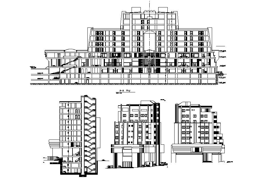 Commercial building detail drawing defined in this AutoCAD file. this file consists of a door window detail, roof detail, front elevation of a commercial building with staircase detail drawing given with specifications. this can be used by architects and engineers. download this 2d AutoCAD drawing file.