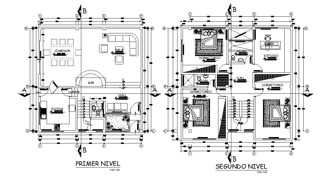 The architecture modern residence house ground floor and first floor plan with furniture layout design that shows the length and breadth of the plan is 10m and 10m respectively. the plan includes kitchen, dining area, drawing room, living area, bar counter, inside staircase, 3 bedrooms and study room with all dimension detail. the total build up area is 100 square meter plot size. Thank you for downloading the AutoCAD file and other CAD program from our website.
