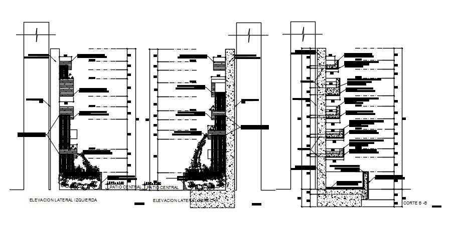 Left side elevation of the structure is given in this Autocad drawing model. Right side elevation is given. In this drawing 10mm fiberglass waterfall fiber optic exit lighting, stone plate laja dark 1 "x 6" adhered with ceramic glue, s ardinel de jardinera & enchape 1 "x 6" clear stone, are mentioned. For more details download the 2D Autocad drawing file. Thank you for downloading the 2D Autocad files and other CAD program files from our website.