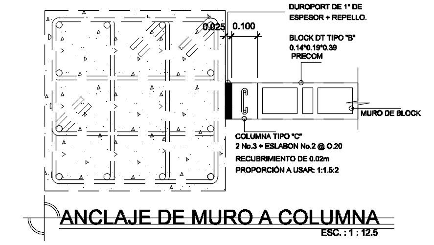 Wall to column anchor details are given in this Autocad drawing model. Thickness of duroport is 1”. For more details download the 2D Autocad drawing file. Thank you for downloading the 2D Autocad files and other CAD program files from our website.