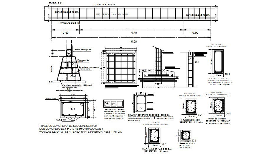Beam and column reinforcement details are given in this Autocad drawing file. This is house plan beam and column. Number of bars, size of bars, reinforcement details, and measurements are given in this Autocad drawing model. For more details download the 2D Autocad drawing file. Thank you for downloading the 2D Autocad files and other CAD program files from our website.