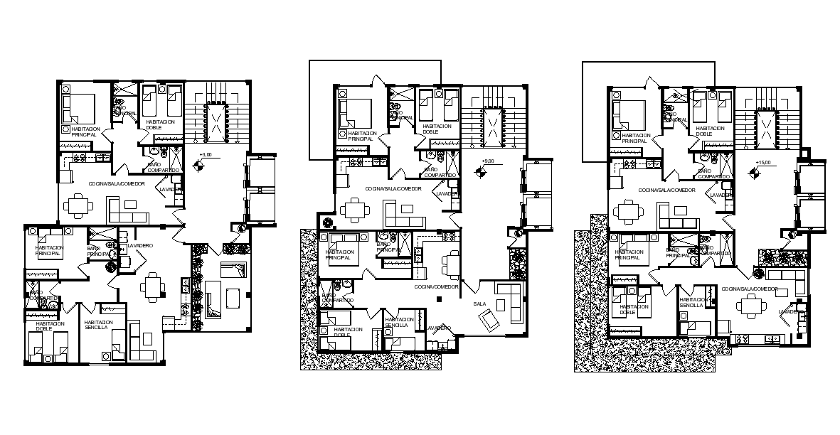 Two blocks apartment typical floor plan is given in this AutoCAD file. Download the AutoCAD file.