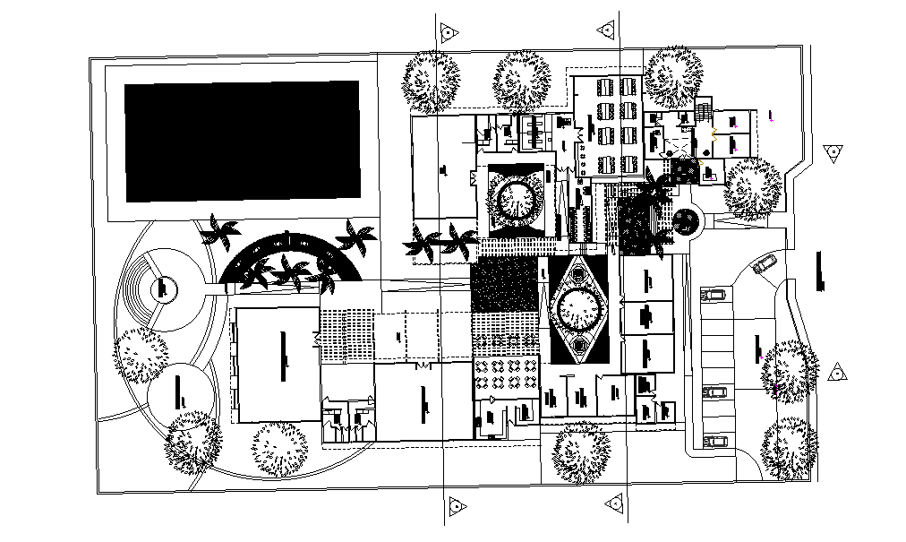 The hotel building detail drawing presented in this AutoCAD file. in this file, the ground floor drawing that shows the main entranceway, parking detail, landscaping, staircase detail, open space detail drawing. this can be used by architects and engineers. Thank you for downloading the 2D Autocad DWG drawing and other CAD program files from our website.