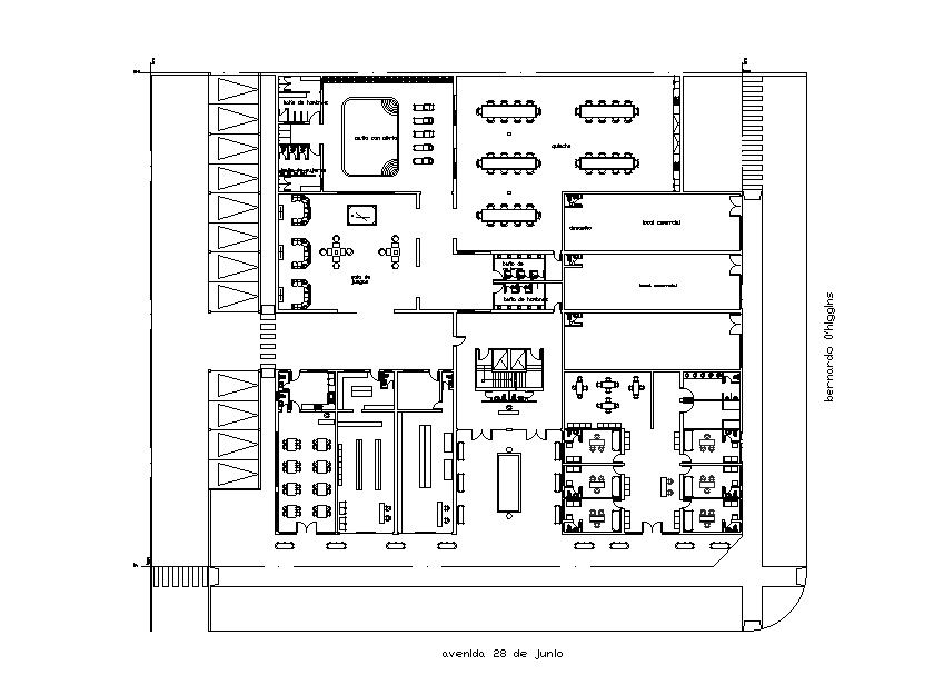 The ground floor plan of the corporate office defined in this Autocad file. In this plan office room, a restroom for employees, cafeteria, kitchen, reception area, waiting room, and other details are given in this plan. this can be used by architects and engineers. Download the 2D Autocad drawing file.