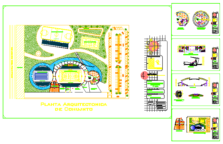 This is a Sport center design drawing project with landscaping layout, Elevation drawing, section drawing, planing design drawing in this auto cad drawing file.