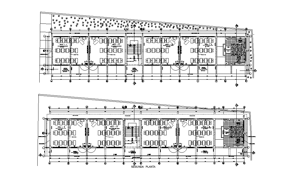 46x9m school building plan is given in this Autocad drawing file. Download the 2D Autocad file.