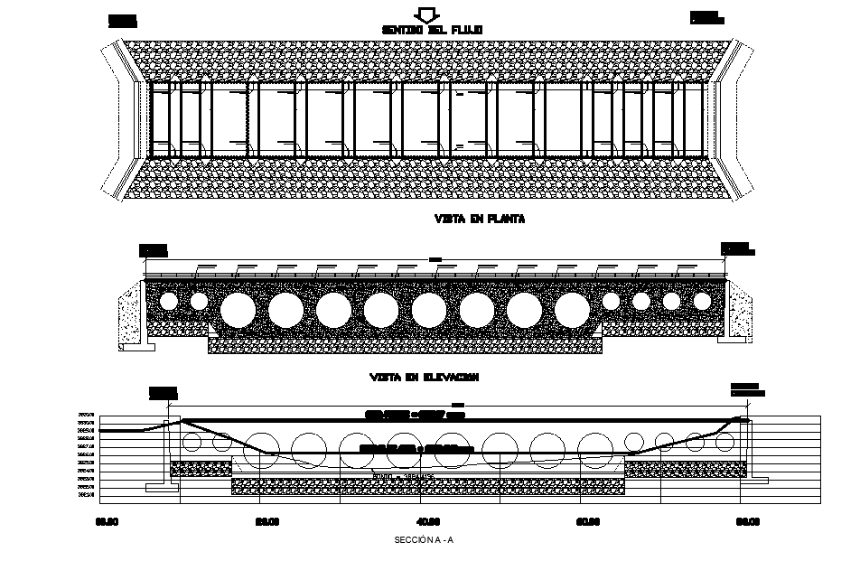 Manual cano Sewer Bridge is available in this Autocad drawing file. Plan, elevation and section view of the bridge is given. Expansion joints, water mirror, drain pipe, side walk, left side step and right side steps are mentioned in this drawing model. For more details download the 2D Autocad drawing file. Thank you for downloading the Autocad files and other CAD program files from our website.