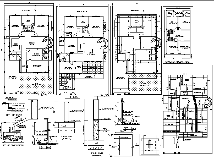 House Design Include the DwG file. 3 floor design, Lay-out design, Column, beam detail, foundation cutting detail.