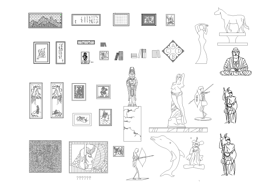 This DWG CAD file features detailed art piece block drawings suitable for architects, designers, and interior decorators. The layout includes precise 2D representations ideal for placement in residential and commercial spaces. Perfect for enhancing visual appeal in walls, lobbies, and hallways, this AutoCAD file helps professionals create artistic, balanced, and creative interior design compositions.