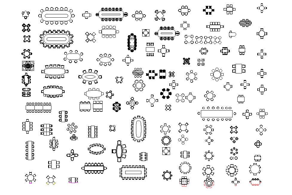 Dining table AutoCAD block drawing stated in this AutoCAD file. this file consists of different types of several dining tables like four-seater, eight-seater table with elevation drawing section, and plan given with dimensions and specifications in it. this can be used by architects and engineers. Download this 2d AutoCAD drawing file.