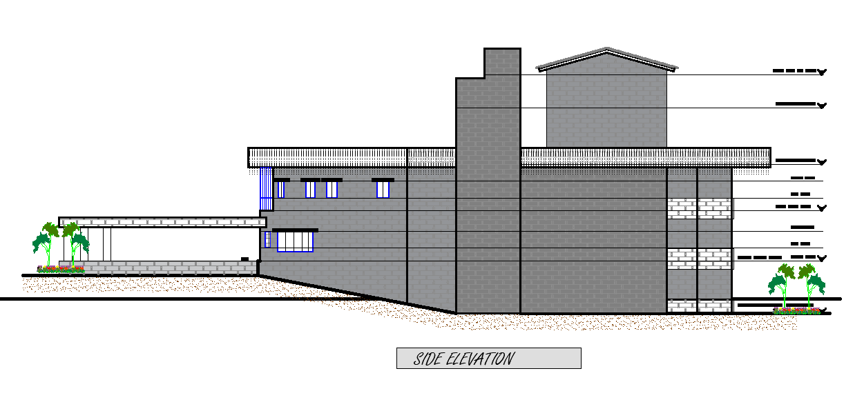 Side elevation of the resort is given in this Autocad drawing file. This is G+1 resort plan. In this elevation trees, staircase, front portion, doors and windows are mentioned. For more details download the drawing file. Thank you for downloading the Autocad drawing file and other CAD programs from our website.
