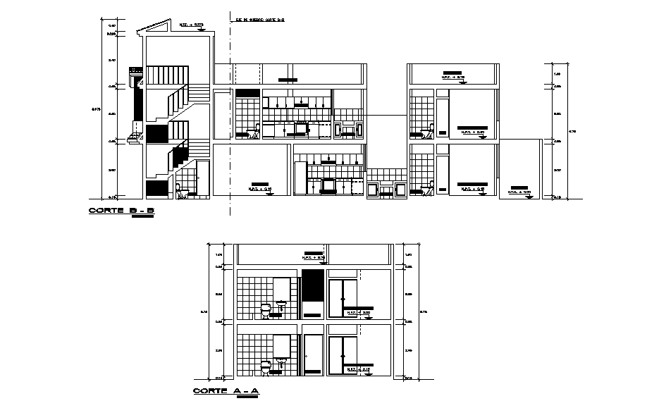 Section view of the house plan is given in this Autocad drawing model. Download the Autocad drawing file.