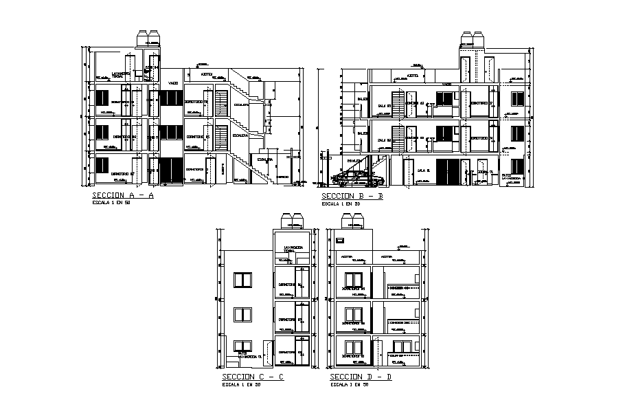 The residence section of the apartment building detail presented in this CAD drawing. Download the AutoCAD file.