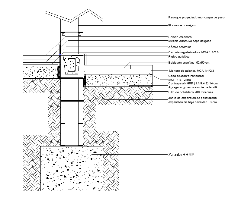 2D Autocad DWG drawing file has the details of concrete structure. In this material details are given. Single-layer plaster sprayed plaster, Concrete block, Ceramic screed, Thin layer adhesive mixture, Ceramic baseboard, Asphalt felt, Horizontal insulating layer, HHRP underlayment (1: 1/4: 4: 8) 14 cm., Coarse aggregate brick rubble , 200 micron polyethylene film, 3 cm low density expanded polystyrene expansion joint, HHRP shoe and other details are mentioned. For more details download the 2D Autocad DWG drawing file. Thank you for downloading Autocad drawing files and other CAD program files from our website.