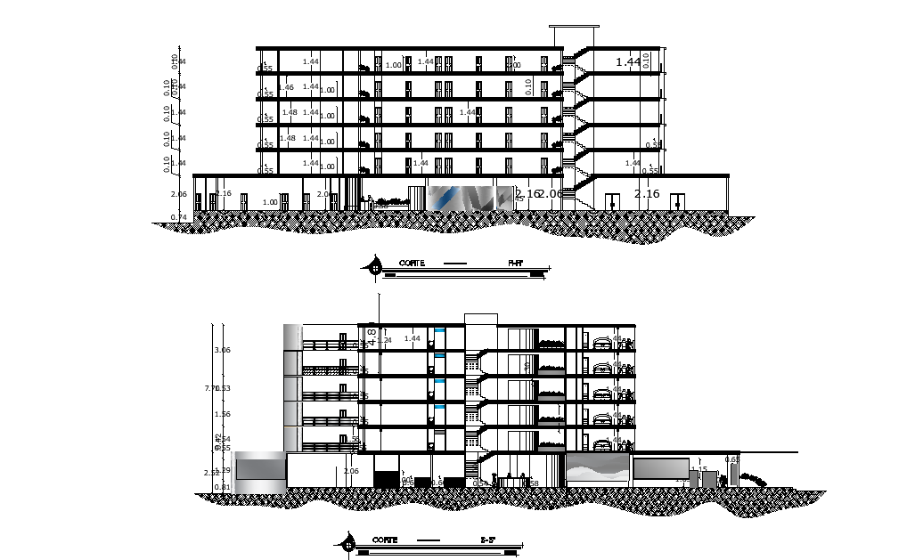 Section view of the club house plan is available in this Autocad DWG drawing model. Total height of the building is 10.22m. This is given with staying room. In this drawing swimming pool, gym, casino, bar, dance club, car parking, restaurants, auditorium, meeting room, rest room for male and female, admin office and other details are given in this drawing model. Other details are given in this Autocad drawing file. Download the Autocad drawing file. Thank you for downloading the Autocad drawing file and other CAD program files from our website. S