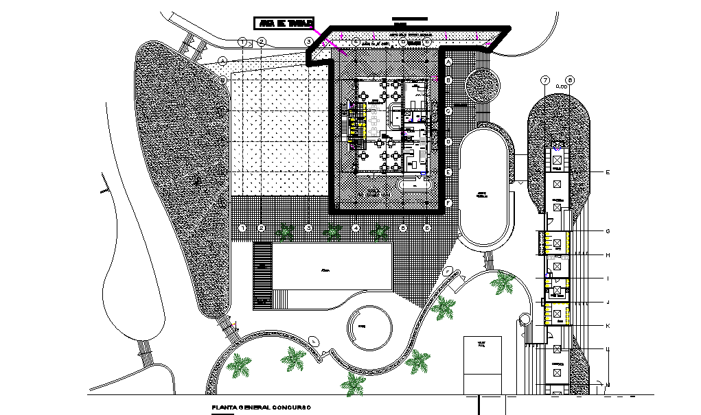 Architectural plan of restaurant is given in this Autocad drawing model. This is given with game area. Volley ball, swimming pools, dressing area, child games, rest room for male and female, dining area, work area, food service area, new inclined ground terrace and existing car parking are available in this hotel. Download the Autocad drawing file. Thank you for the Autocad drawing file and other CAD program files from our website.