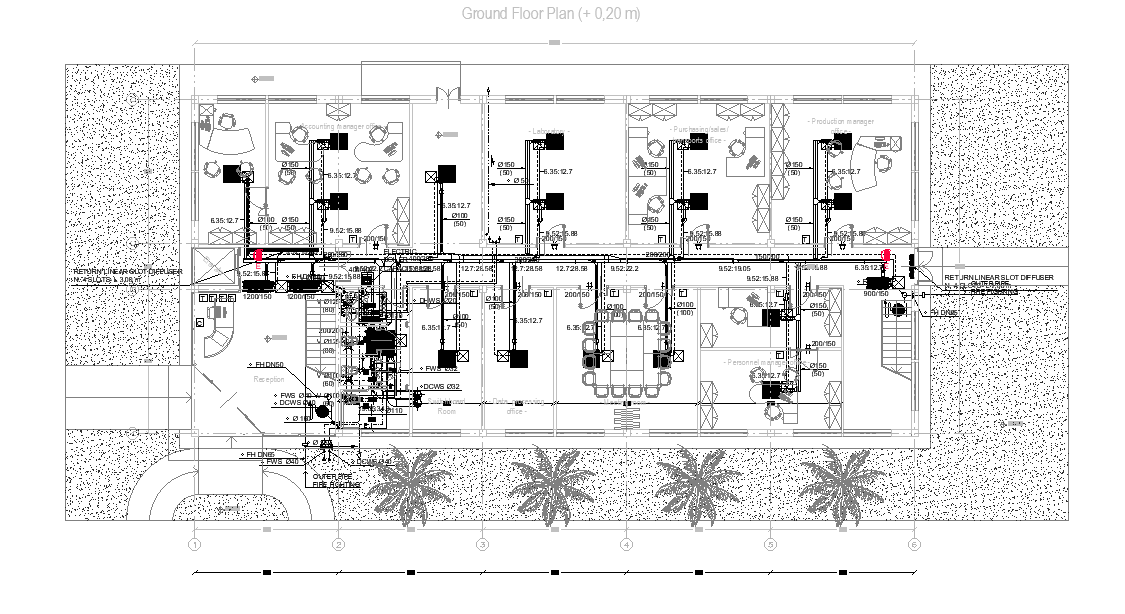 Corporate Office Building Floor Plans provided in this DWG file. Download the AutoCAD file.