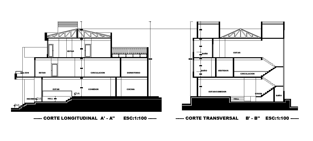 Section view of 3 floored villa house plan is given in this Autocad drawing model. Download the Autocad file.